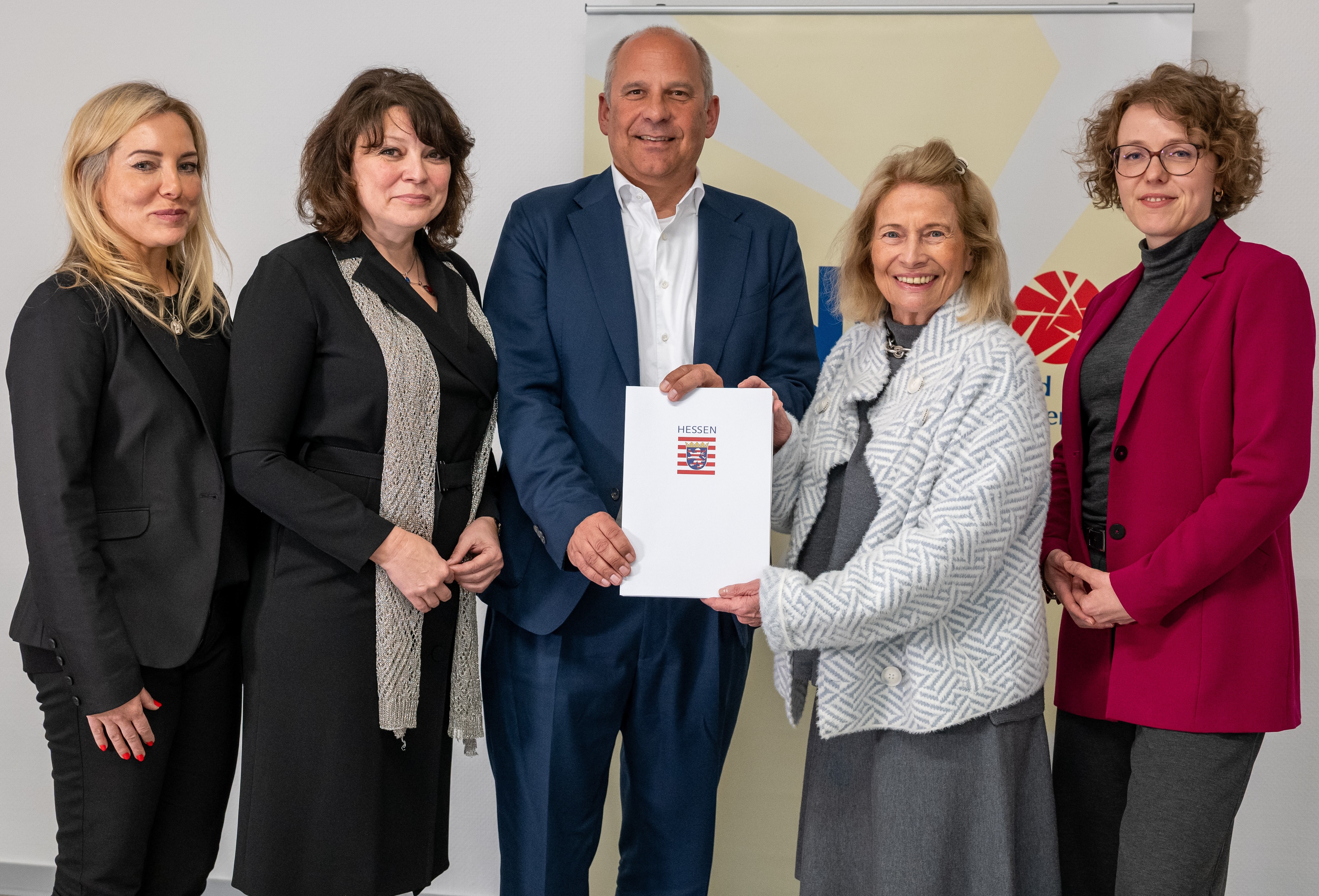 Innenminister Roman Poseck besuchte heute den Bund der Vertriebenen – Landesverband Hessen e.V. (BdV Hessen) in Wiesbaden und übergab in der Geschäftsstelle im Haus der Heimat einen Förderbescheid in Höhe von 150.000 Euro. Mit den Mitteln wird zum einen die Arbeit der einzelnen Landsmannschaften und Verbände gesichert: Der Landesverband Hessen leitet die Gelder nach einem festen Schlüssel direkt weiter, sodass diese ihre wichtige Arbeit fortsetzen können. Zum anderen unterstützen die Fördermittel die gemeinsame Geschäftsstelle, die seit Januar 2024 beim Landesverband angesiedelt ist. An dem Termin nahmen neben der stellvertretenden Landesvorsitzenden Rose-Lore Scholz auch weitere Vorstandsmitglieder und Mitarbeiter teil.