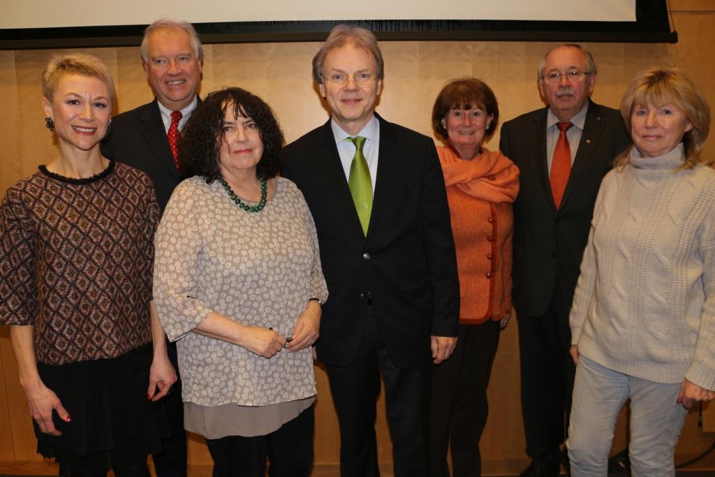 v.l.: Stadträtin Albina Nazarenus-Vetter mit Ulrich Caspar MdL, Freya Klier, Dr. Bernd Heidenreich, Prof. Dr. Daniela Birkenfeld, Landtagspräsident Norbert Kartmann MdL und Gudrun OsterburgAuch für viele Frankfurter Bürgerinnen und Bürger ohne Vertreibungsbiographie war das nahegehende Portrait verschleppter deutscher Frauen und Mädchen ein denkwürdiges Ereignis, das zu interessanten Diskussionen anregte. Zudem war das Publikum im großen Saal des Haus am Dom auch politisch hochkarätig besetzt: