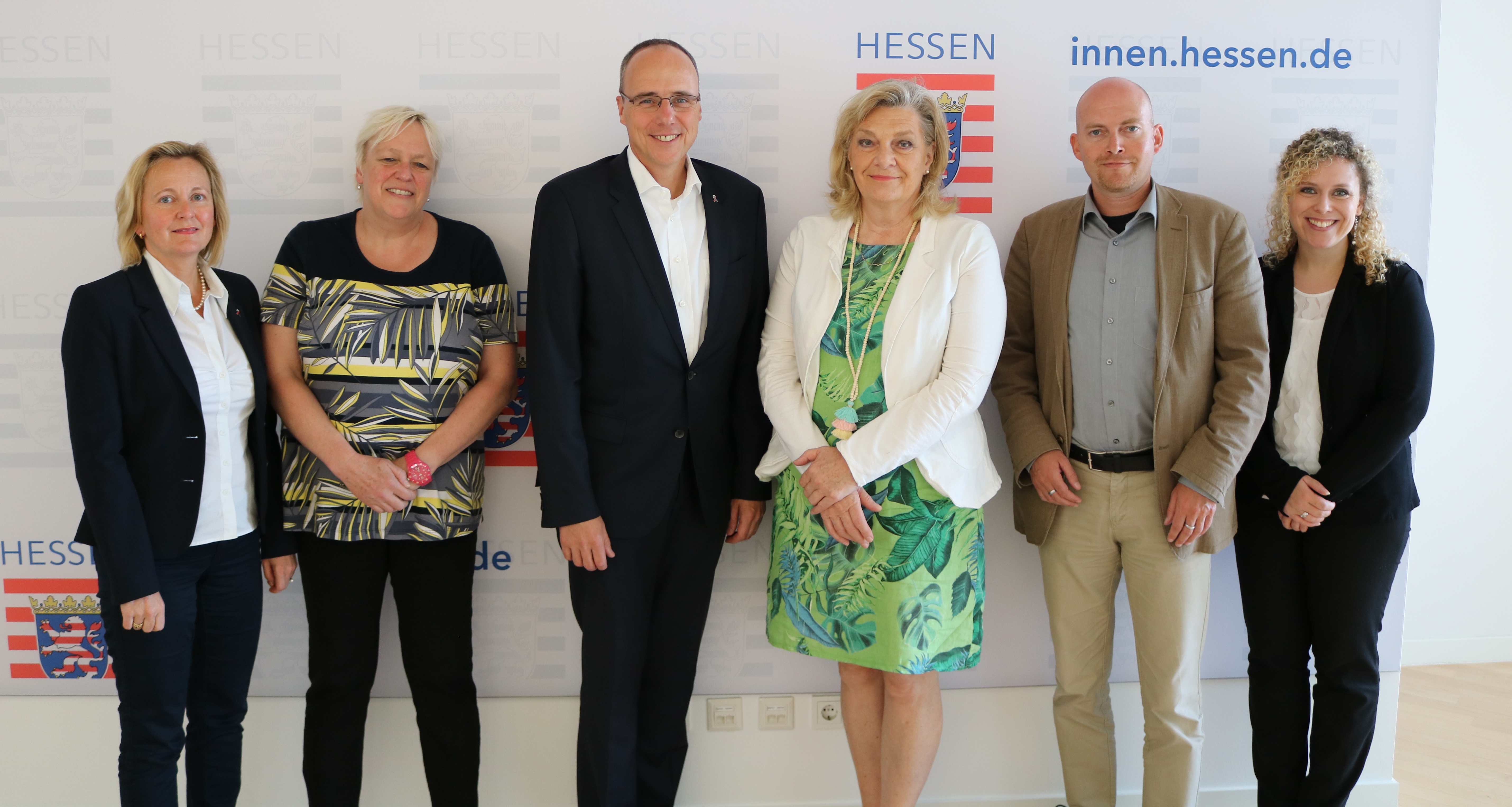 Hierbei kann er auf die tatkräftige Unterstützung der Landesbeauftragten zählen, deren Stellung im Zuge der neuen Ressortzugehörigkeit deutlich aufgewertet wurde. Margarete Ziegler-Raschdorf, die bislang ehrenamtlich tätig war, wird ihre Funktion künftig hauptamtlich ausüben. Sie bildet im Innenministerium mit ihren Mitarbeiterinnen und ihrem Büroleiter eine eigene Stabsstelle, welche unmittelbar Innenstaatssekretär Dr. Stefan Heck unterstellt ist und im Vergleich zu ihrem bisherigen Büro auch personell aufgestockt wurde. Neben ihrer Vorzimmerkraft Jelena Paukson und ihrem Büroleiter Dr. Kai Lemler, gehören nun auch Kathleen Cahill, Christiane Zacher und Yvonne Kremer zum Team der Landesbeauftragten.